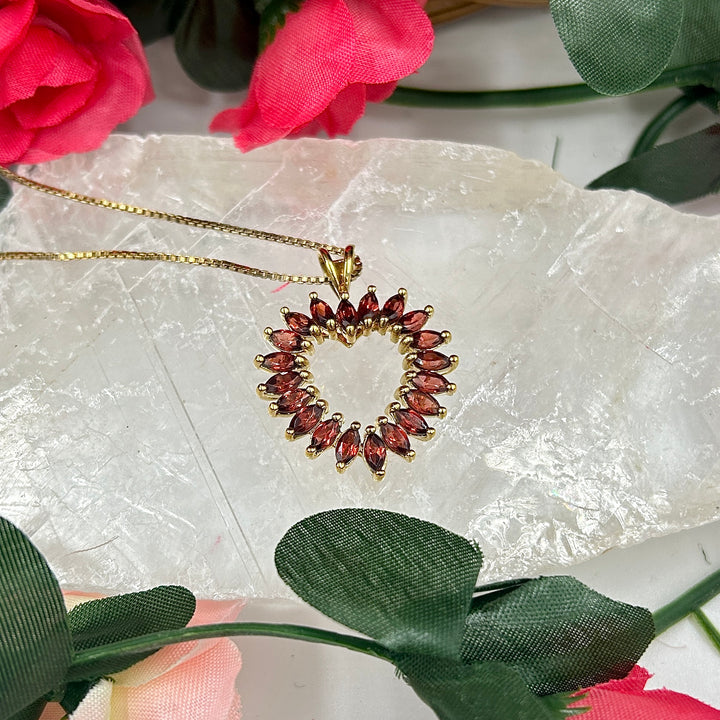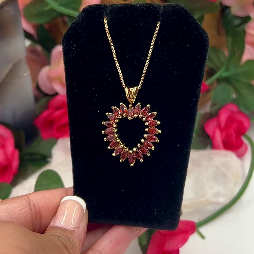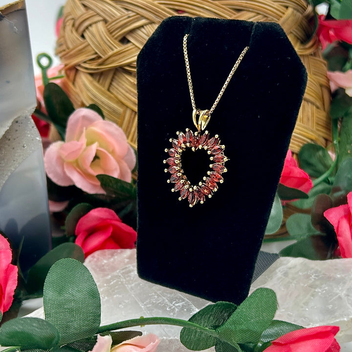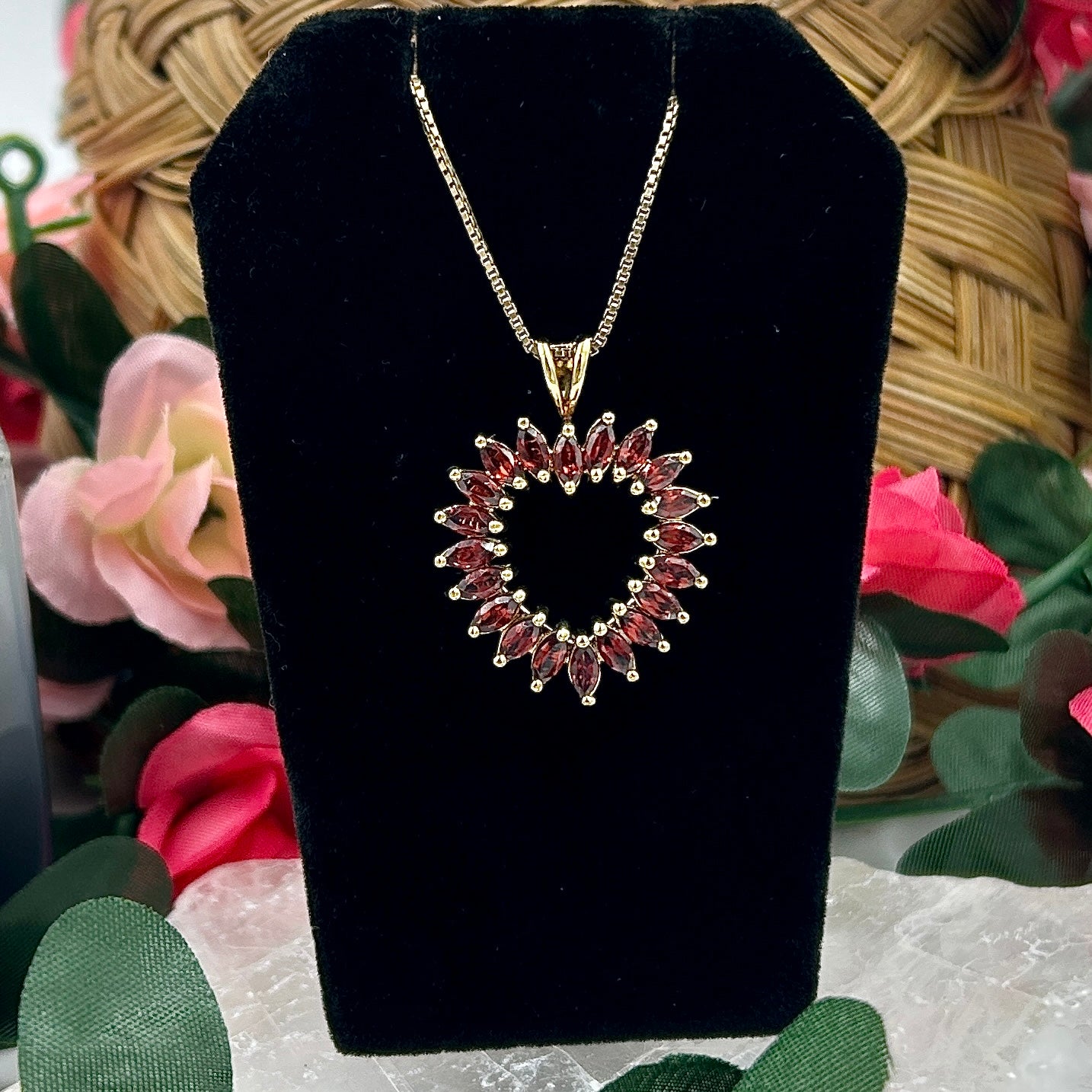Indulge in the beauty and elegance of our Sterling Silver Gold Plated Garnet Heart Necklace. Order now to experience the perfect blend of luxury, romance, and sophistication.