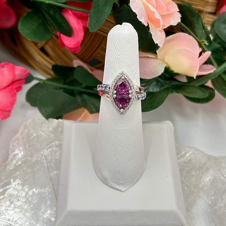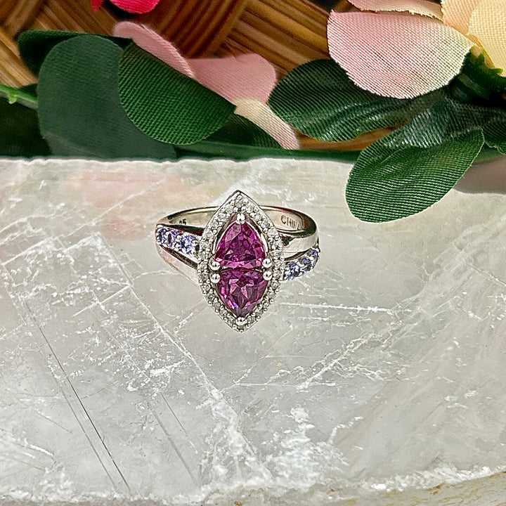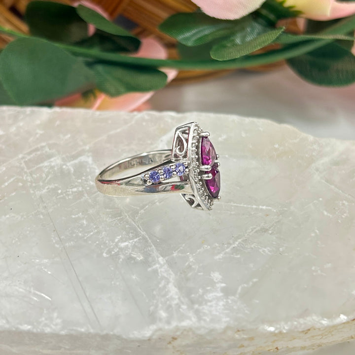 Sterling Silver 1.75ctw Rhodolite Garnet, Diamond, & Tanzanite Ring
