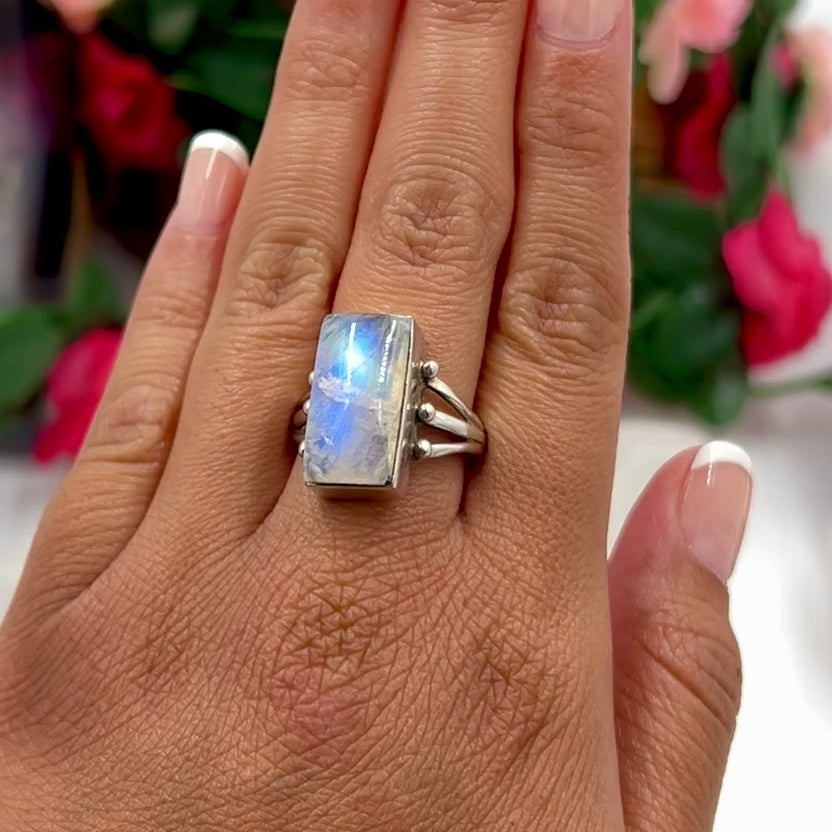 Perfect for adding a touch of sophistication to any outfit, this ring is ideal for both everyday wear and special occasions. Whether you're treating yourself or looking for a thoughtful gift, the Sterling Silver 5 Carat Moonstone Split Band Ring is sure to impress.