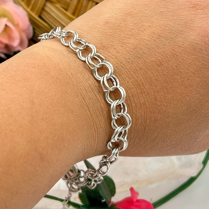 Whether you're accessorizing for a special occasion or looking for a refined piece for everyday wear, this Sterling Silver Double Rolo Link Bracelet is a perfect choice. Its timeless design and exceptional craftsmanship make it a standout addition to any jewelry collection.
