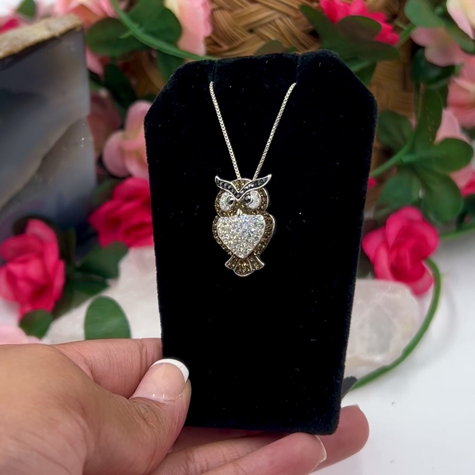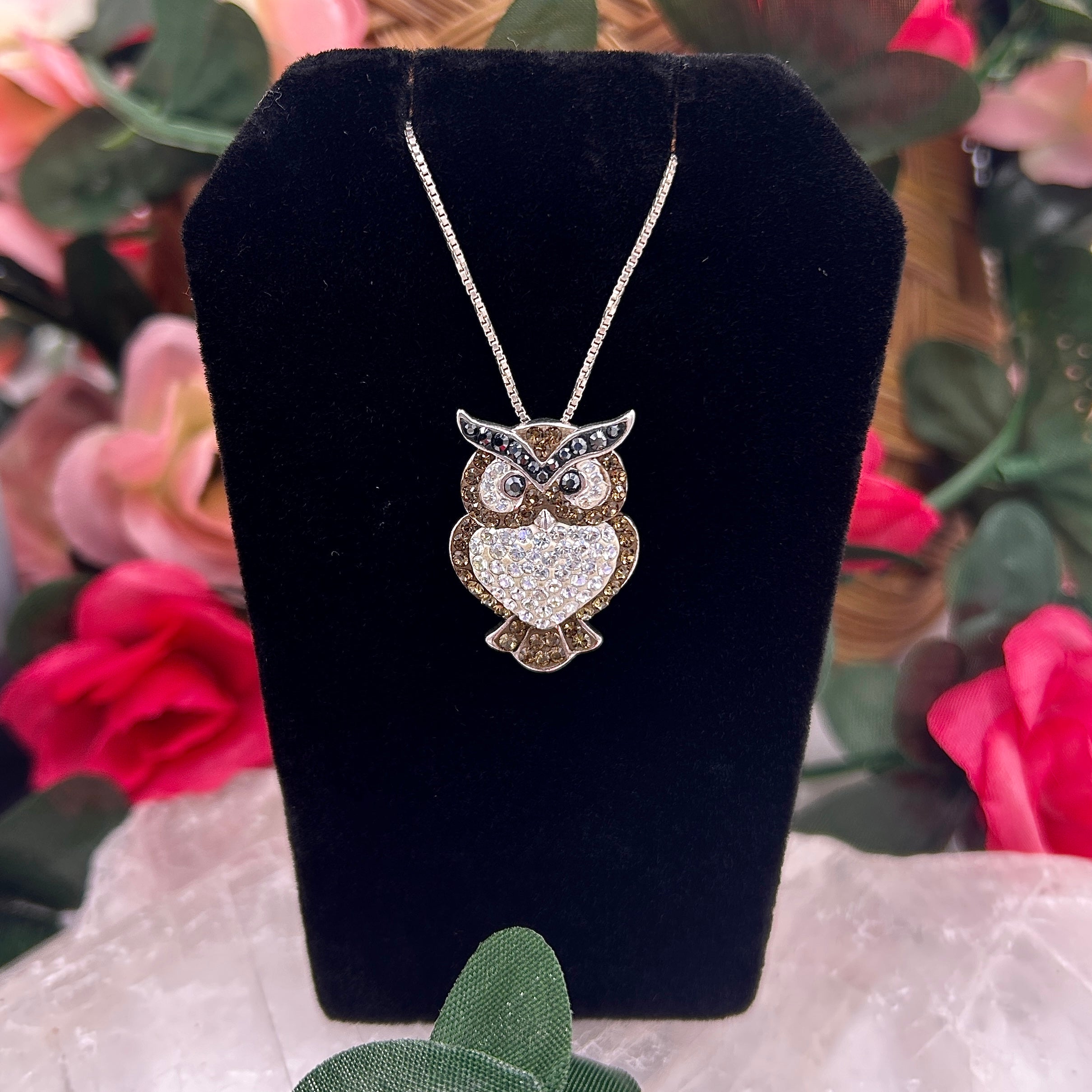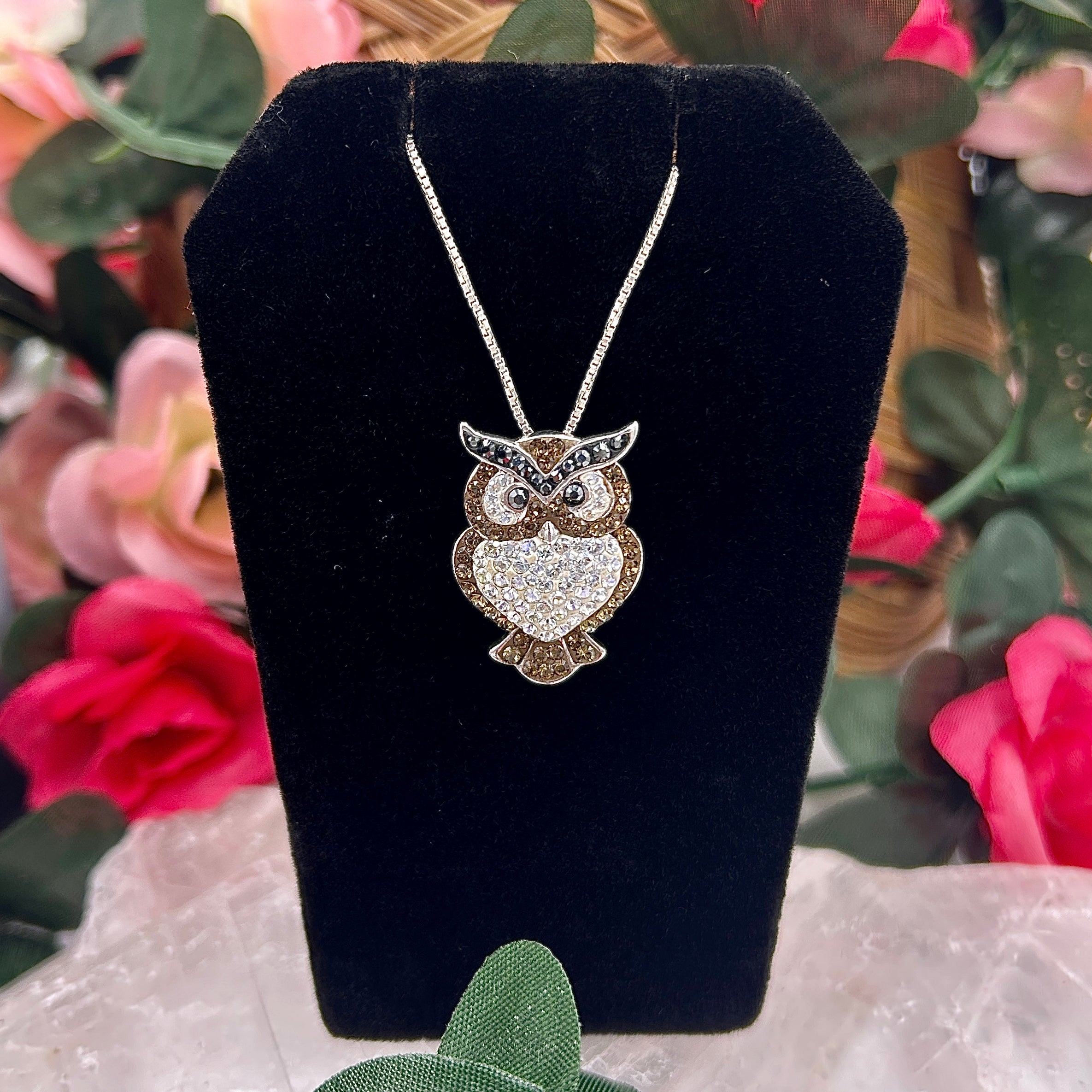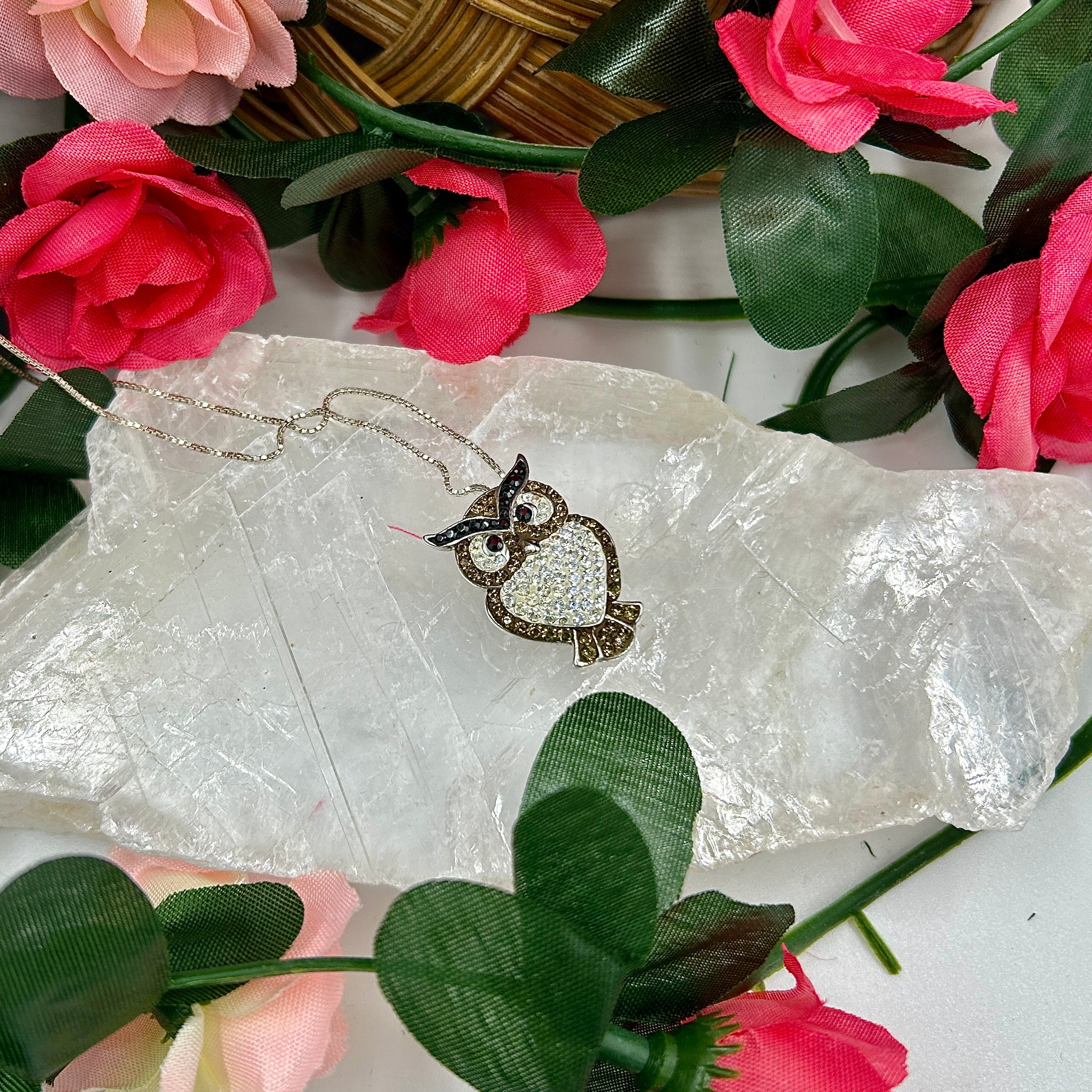 - Design: Charming owl pendant with a cluster of vibrant cubic zirconia